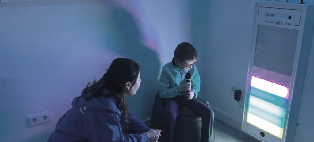 Además de que el Centro Infantil cuenta con unas completas instalaciones para nuestras sesiones, disponemos de un gimnasio con equipamiento para rehabilitación y una novedosa sala multisensorial, que proporciona a los pacientes con mayores limitaciones comunicativas una experiencia inmersiva en experiencias táctiles, sonidos, colores y olores, que fomentan vías de conexión y relación con el entorno para el trabajo con los terapeutas.